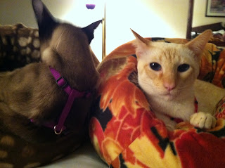 We met Kathy and Ray at The Machine Shed in Davenport, Iowa http://www.machineshed.com/davenport/ after checking on the menu multiple times. We stayed at the hotel next door, and Franki and Rusty had their first motel experience. I love the last photo; it was as if Rusty was letting Franki know "it's going to be OK."